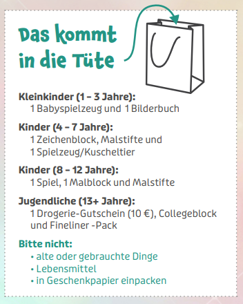 Bei der Aktion werden Weihnachtsbeutel gesammelt, um diese dann an caritative und diakonische Einrichtungen im Bistum weiterzugegeben, damit bedürftigen Kindern und Jugendlichen eine Freude gemacht werden kann.